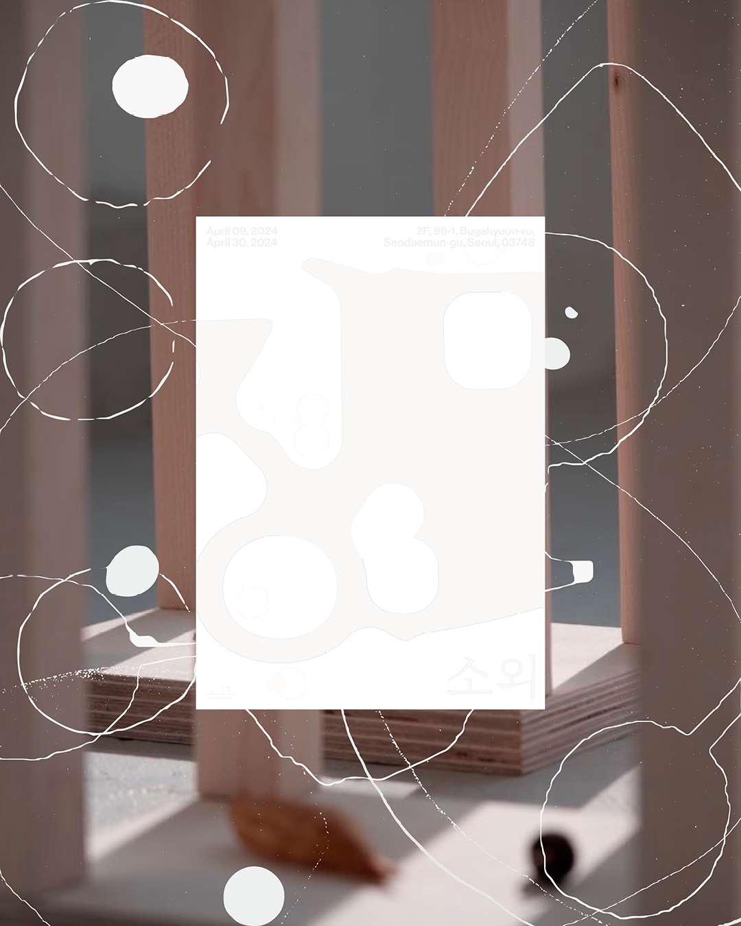 이러한 문제를 해결하기 위해 [관찰 : 머물러야만 볼 수 있는 것들] 이라는 문장으로 시각화 콘셉트를 정의하는 단계를 거쳤습니다. [1]의 경우, 구체적으로 포스터라는 결과물에서 정적인 요소들을 최소화 하기 위해 인쇄 없이 스코딕스 가공으로만 처리하는 방법을 채택했습니다. 불투명도가 낮고 옅은 막의 형태를 가지고 있는 스코딕스를 통해 위치에 따라 반사되는 빛의 정도가 달라질 수 있도록, 즉 위치와 조도에 따라 포스터의 모습이 동적으로 기능할 수 있도록 의도했습니다. [2]의 경우, 동적 상태를 직관적으로 표현하기 위해 [장면]이라는 타이틀을 어떤 상태에서도 분리되지 않고, 이어져 있도록 표현하는 실험을 먼저 진행 했습니다. 실험을 통해 결과적으로 [장면] 타이틀이 지면 상에서 좌우로 1/4씩 넘치는 구조를 채택했습니다. [분리되지 않고, 이어지고 있음.]을 지면에 국한시킨다면, 표현하고자 했던 메시지가 충돌할 수 있다고 생각했기 때문입니다. 이어서 [소외]라는 정적 상태를 표현하기 위해 지면에서 가장 소외된 공간을 찾고, [장면]이라는 타이틀과 대비감을 높일 수 있도록 자간을 넓게 설정해 완전히 분리되어 있는 형태로 표현했습니다.